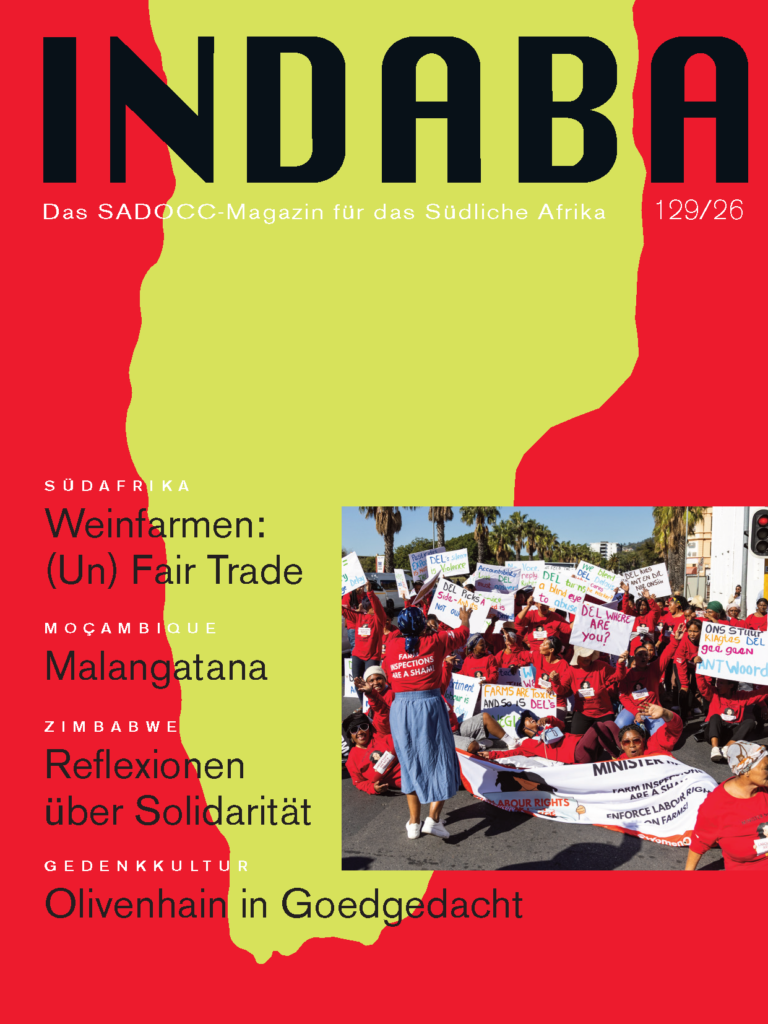 Offenlegung: INDABA wird herausgegeben vom Dokumentationszentrum Südliches Afrika (SADOCC) in Wien (ZVR-Zahl 813176558) und bezweckt die Information und Diskussion über Entwicklungen im Südlichen Afrika.